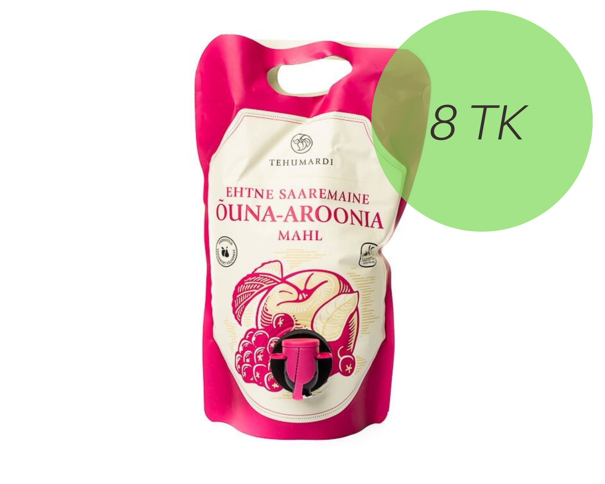 Ehtne Saaremaine õuna-aroonia mahl 1,5L pakis x 8tk. Kokku 12 liitrit maitsvat mahla.