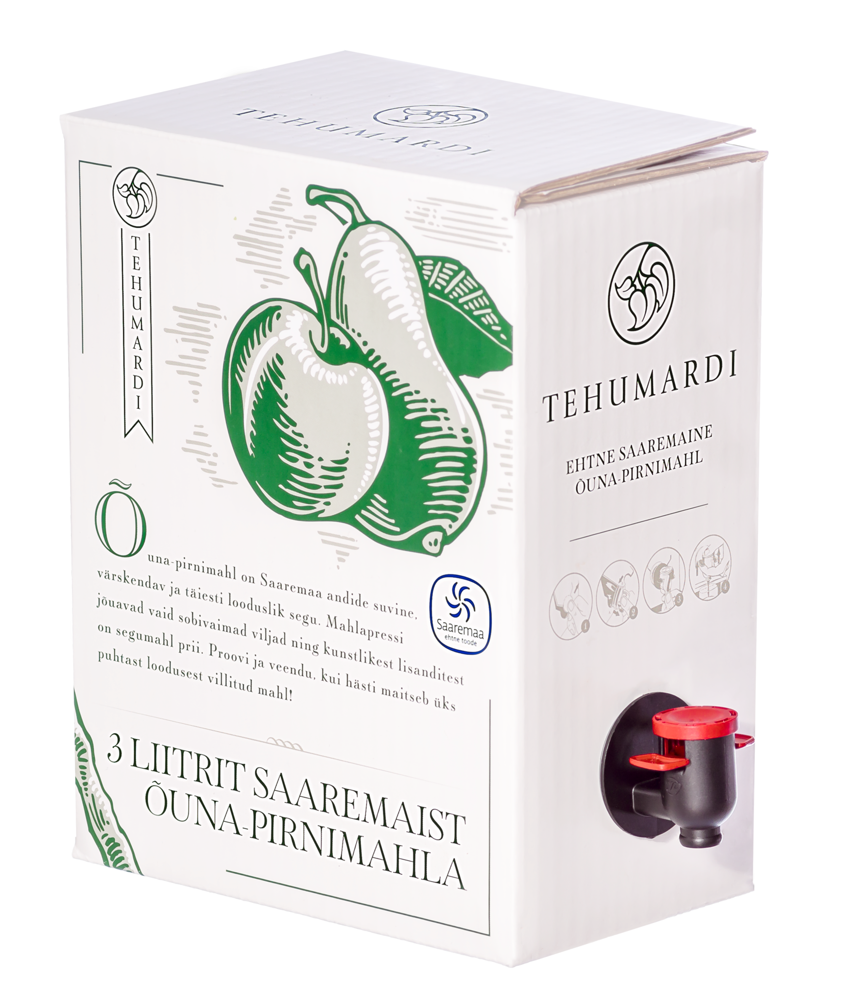 Ehtne ja maitsev Saaremaine õuna-pirni segumahl.Hind: 8,90 EUR (2,97€/L). Hind sisaldab käibemaksu 24%.